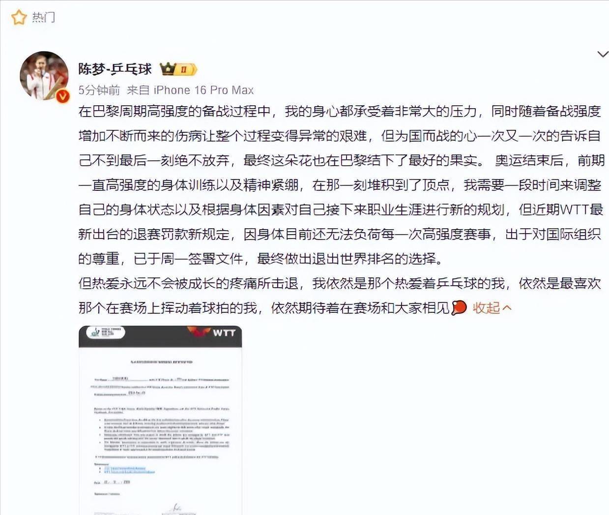 职业运动员就是这样。 职业化不等于往死里用。 网球的ATP、WTA也有密集赛程,他们的运动员委员会话语权强得多,赛制也更保护球员。 WTT呢? 商业赛的积分,竟然能和四年一届的奥运会积分价值持平(都是2000分),这合理吗? 逼着运动员为了奥运资格,不得不去疯狂参加商业赛“刷分”。