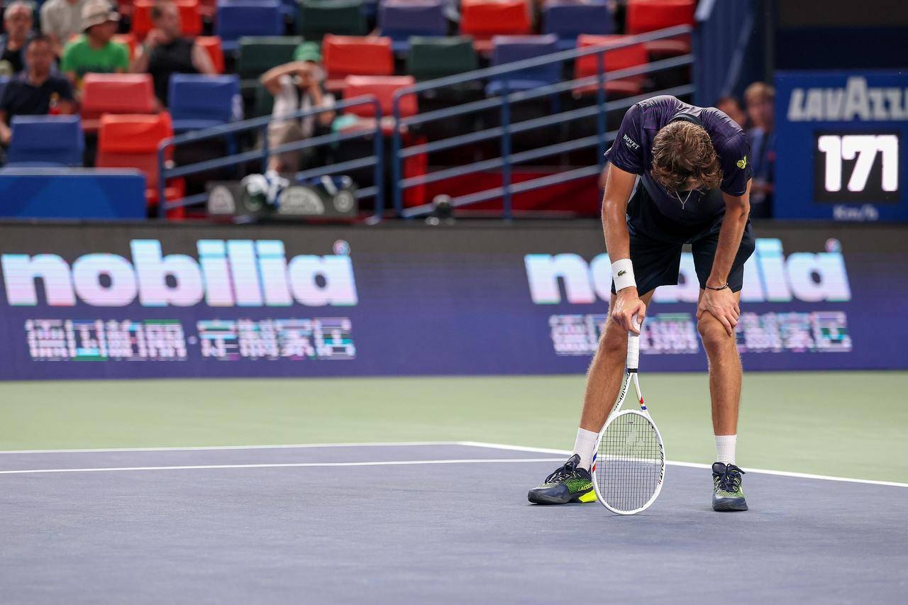 在这里,高温不是“干扰项”,而是选手们的“头号对手”——辛纳在第三轮对阵格里科斯普的比赛中,右腿突然出现严重抽筋,疼痛让他无法继续站立,最终遗憾退赛;梅德韦杰夫同样在比赛中遭遇抽筋困扰,咬牙坚持到比赛取得胜利后,穿着湿透的球衣瘫倒在座椅上;塞尔维亚天王德约科维奇比赛中也频频出现不适,多次呕吐。