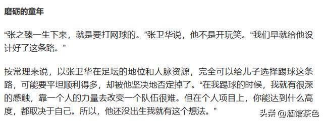 早在张之臻出生前,他就决定不让儿子走足球路,转而选择更适合的个人体育赛道。