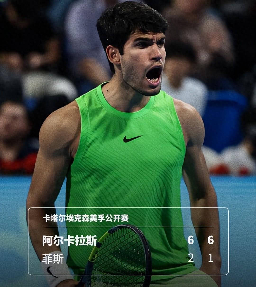 此前四轮比赛阿卡也许略显吃力,但今天的决赛简直是菜鸟切瓜般轻松,菲斯只能眼睁睁看着对手掌控局面,这才是线岁的阿尔卡拉兹拥有当年男子第一人的状态与感觉,实力和手感逆天,他完全配得上这场ATP500赛的冠军,实至名归。