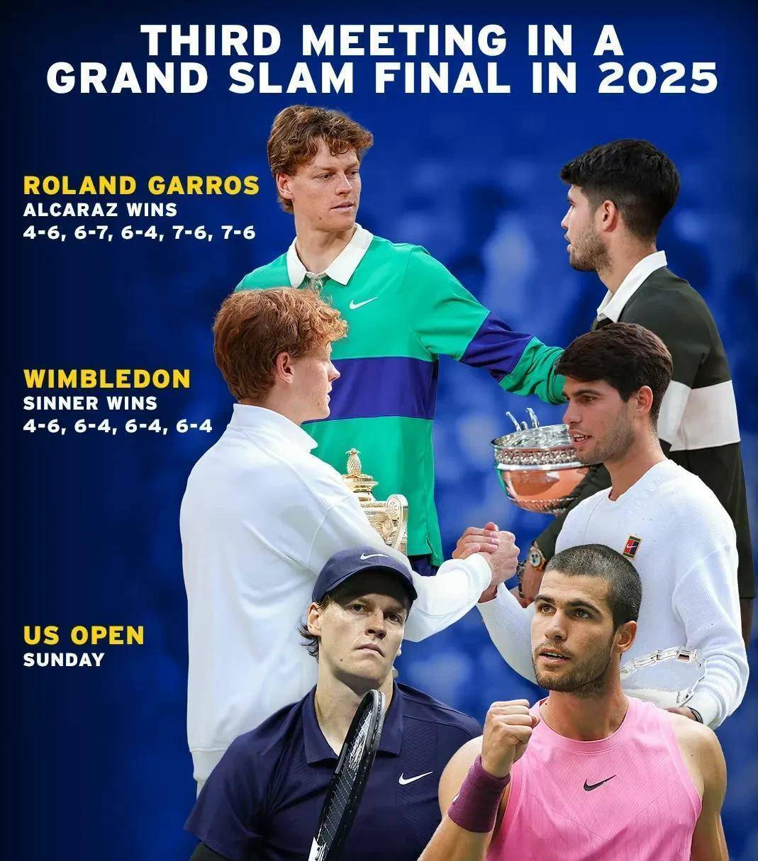 这场比赛标志着男子网坛正式进入“双巨头”时代。自2024赛季初的澳网以来,两人已经包揽了近七个大满贯的所有单打冠军。