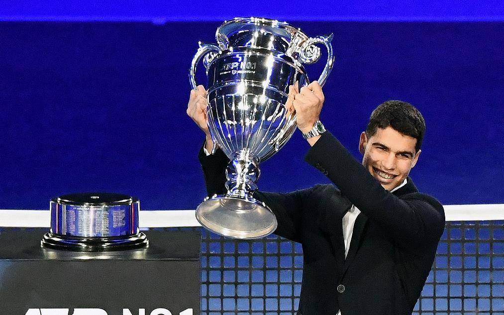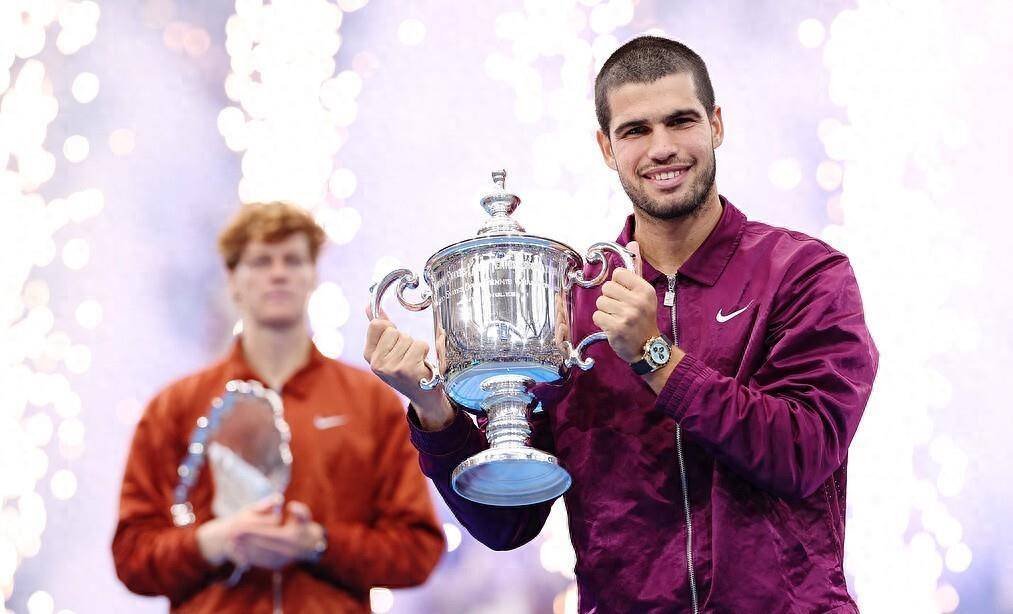 过去两年男子网坛的八座大满贯奖杯,全部被阿尔卡拉斯与辛纳包揽5。 2024年辛纳成为意大利历史上首位世界第一并保持65周5,2025年阿尔卡拉斯立即以法网和美网两冠回应,完成王者归来的完美剧本。